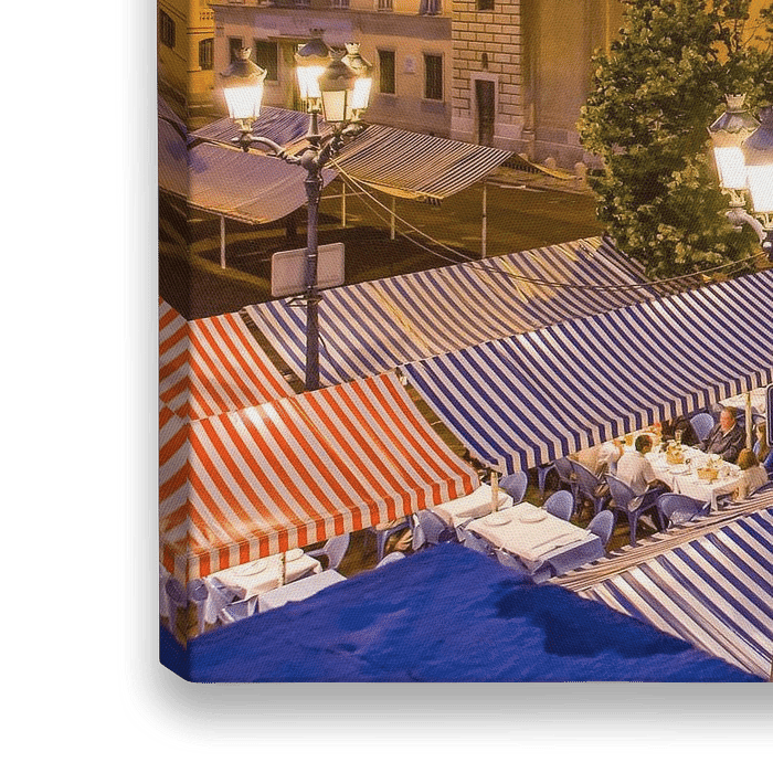 Restaurants und die Kirche Chapelle de la Miséricorde am Platz Cours Saleya in Nizza an der Côte d'Azur am Abend, Côte d'Azur, Frankreich