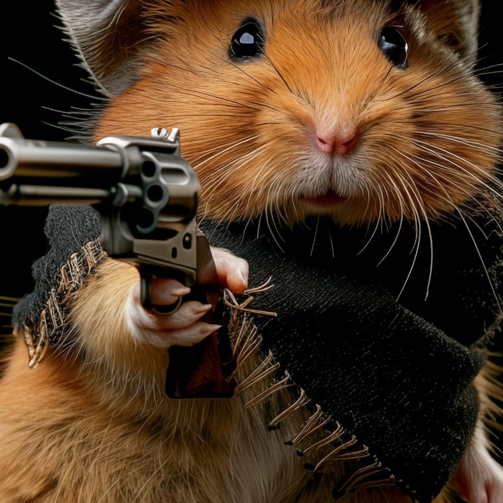 Cowboy-Hamster mit Revolver-Gemälde, das eine wunderbare, luxuriöse Ergänzung für jeden Raum sein wird. Mit seinem einzigartigen und stilvollen Look ist es ein echter Blickfang. Die brillanten Farben und das ungewöhnliche Design machen dieses Kunstwerk zu 100% einzigartig und originell. Es ist der perfekte Fotodruck, um Ihr Interieur zu vervollständigen.