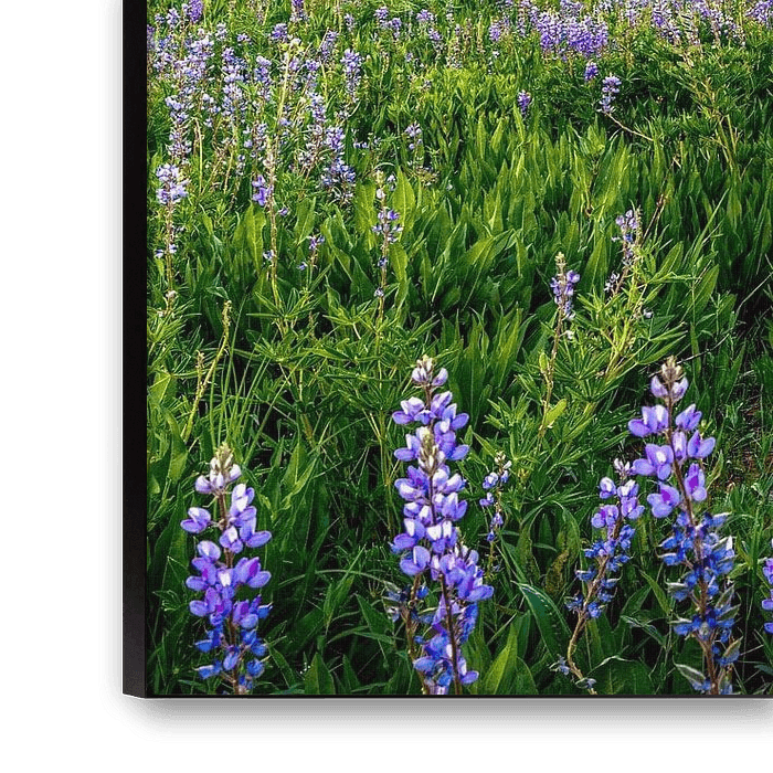 Crested Butte Wildflowers Photo - Großer Kunstdruck von Crested Butte Mountain und einem Feld mit lila Lupine Wildblumen.