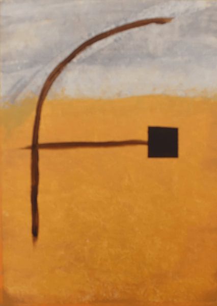 Ein einzigartiges abstraktes Gemälde innerhalb der Serie durch die Einbeziehung einer geschwungenen Linie, die Bewegung und Dynamik einbringt. Die Kombination aus warmen Erdtönen und sanften Grautönen sorgt für ein harmonisches Gesamtbild. Das dunkle Quadrat dient als visueller Ankerpunkt. Die geschichteten Farbaufträge und die subtile…