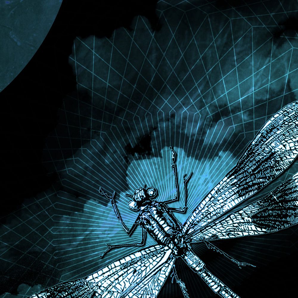 Vintage Dragonfly with cloudy, geometric and colorful graphicdesign. ©2018 Pia Schneider [atelier COLOUR-VISION]