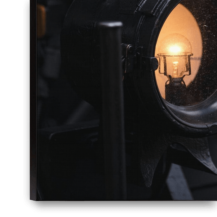 Die Schmalspurdampfzüge der HSB verkehren im Harz. Im Bahnhof Drei Annen Hohne fielen mir die vielen Details an den Lokomotiven auf. Dazu gehörte diese warme Glühbirne, die einen schönen, geheimnisvollen Kontrast zu den dunklen, schwarzen Farben der restlichen Dampflokomotive bildet.