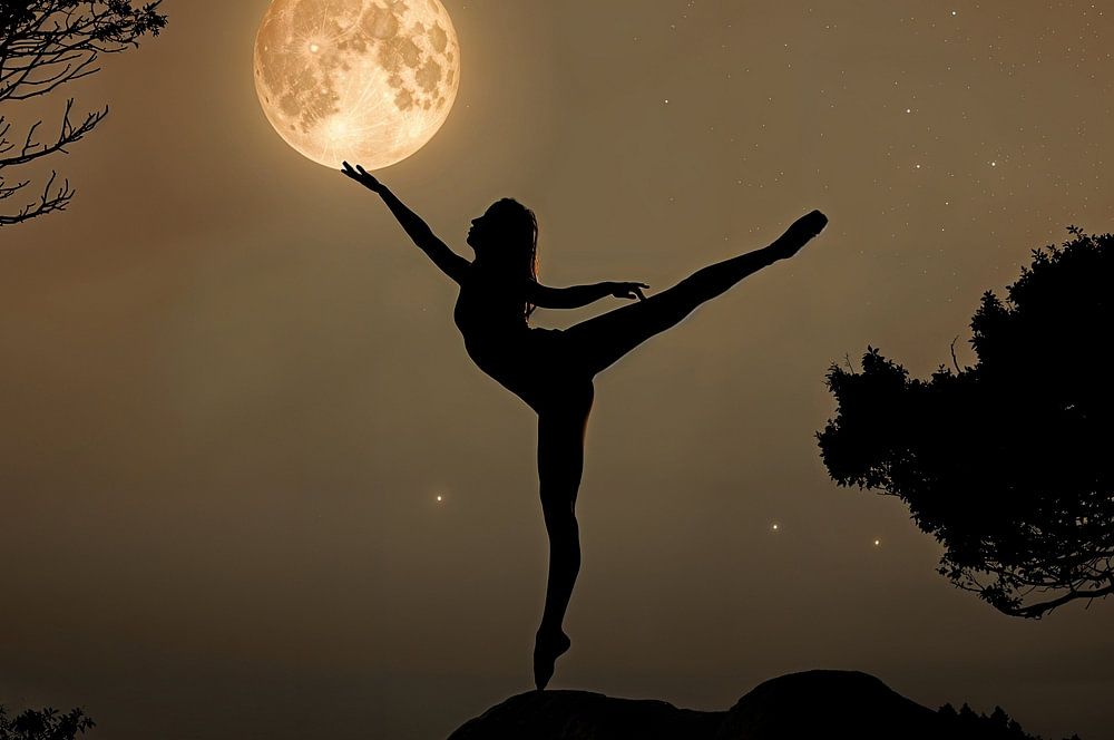De betoverende elegantie van ballet weergegeven in het maanlicht