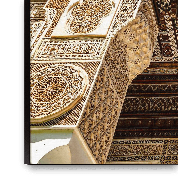 Foto Relief und Ornamente an Fassade vom Museum Dar Si Said in der Medina von Marrakesch in Marokko