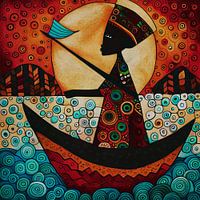 Bestelle dieses abstrakte Wandbild Das Abendritual eines afrikanischen Fischers von Jan Keteleer als Reproduktion auf Leinwand, Alu-Dibond, als Poster, Fototapete oder Acrylglasbild.