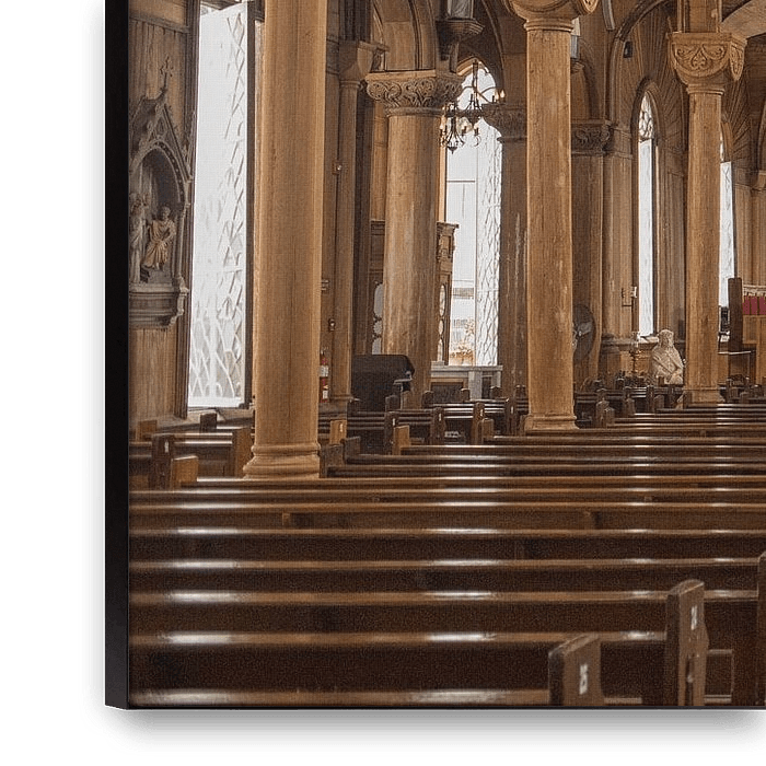 Bestelle das Foto Das Innere der hölzernen Sint Petrus und Paulus Kathedrale in Paramaribo von Patricia Hofmeester als Reproduktion auf Leinwand, Alu-Dibond, als Poster, Fototapete oder Acrylglasbild.