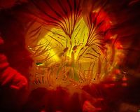 Bestelle dieses Blumen-Wandbild Das Innere einer Blüte der Kapuzinerkirsche von G-spot of nature als Reproduktion auf Leinwand, Alu-Dibond, als Poster, Fototapete oder Acrylglasbild.