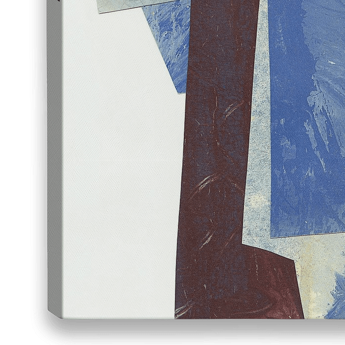 Das Kreuz ist eine Komposition in Blau und Bordeauxrot. Eine Collage aus Ausschnitten aus Kunstzeitschriften. Eine schöne neue Kreation mit einer einzigartigen Form. Religiös und zeitgenössisch.