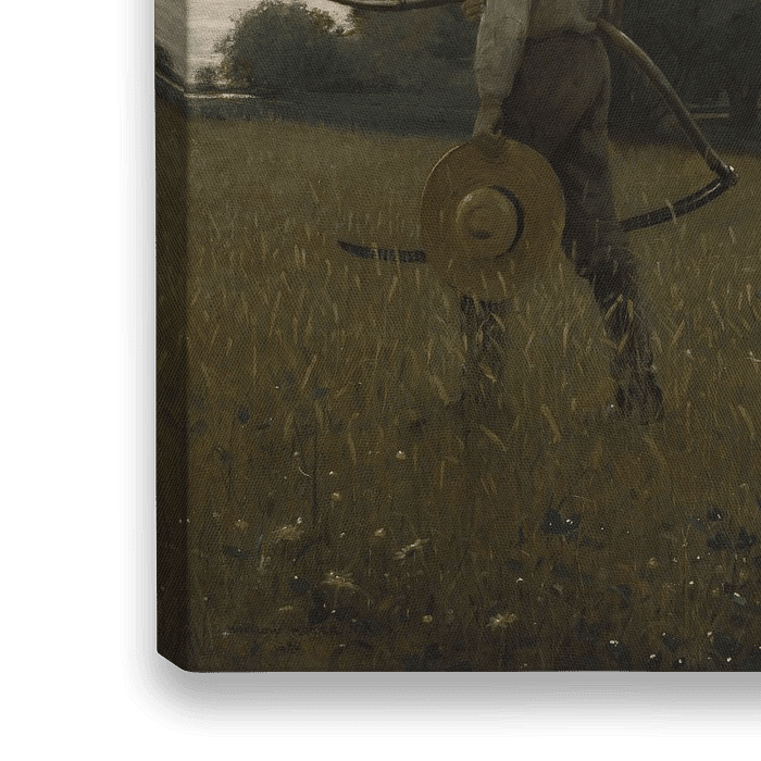 In den Jahrzehnten nach dem Bürgerkrieg begründete Winslow Homer seinen Ruf als Amerikas wichtigster Maler des Alltagslebens. Homers realistische Darstellungen von arbeitenden Bauern, rauen Wildnisführern und sturmgepeitschten Fischern aus Neuengland betonten die kraftvolle und manchmal gefährliche Beziehung zwischen Mensch und Natur. Diese Beziehung steht im Mittelpunkt des Liedes von der Lerche, in dem ein junger Bauer bei Sonnenaufgang seine Felder betritt, um mit der Ernte zu beginnen, und einen Moment lang vom Ruf eines unsichtbaren Vogels verzaubert wird, wodurch eine transzendente Gemeinschaft zwischen dem Menschen und dem Land, das ihn ernährt, entsteht. Homer stellt seinen Bauern als heroischen Menschen dar, der fest auf seinem Feld steht und seinen Hut und seine Sense umklammert. Die Sense des Landwirts ist hier ein interessantes Detail, denn Mitte der 1870er Jahre hatten die amerikanischen Landwirte sie weitgehend durch die effizienteren mechanischen Schnitter von Cyrus McCormick ersetzt. Indem Homer seinen Farmer mit einer Sense darstellt, spielt er nostalgisch auf eine frühere, einfachere Ära des amerikanischen Farmlebens an, als raue Menschen ihr Land manuell und allein bearbeiteten.