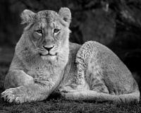 Bestelle dieses Löwen-Wandbild Das Löwenjunge liegt da von Patrick van Bakkum als Reproduktion auf Leinwand, Alu-Dibond, als Poster, Fototapete oder Acrylglasbild.