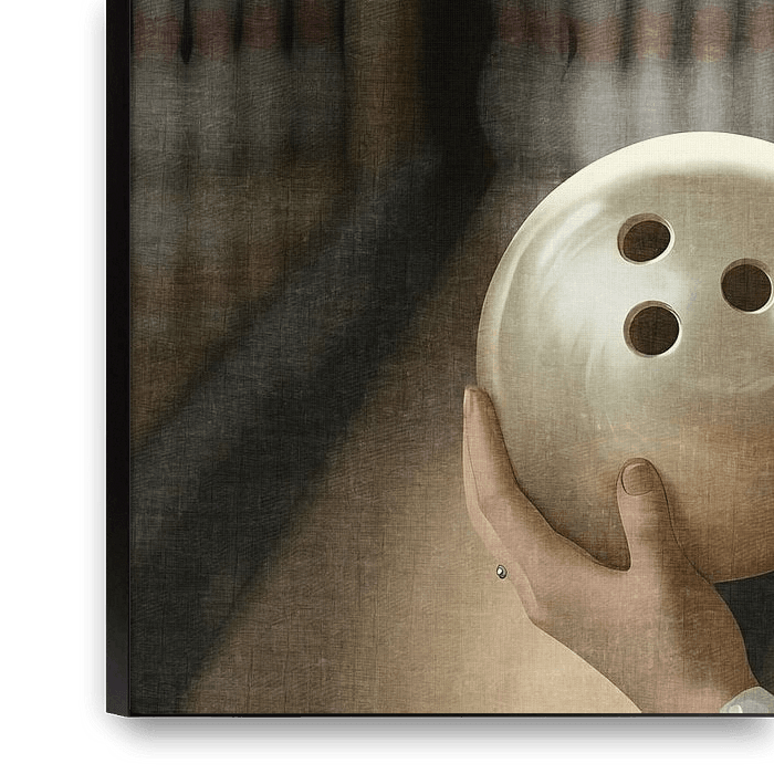 Das Mädchen mit der Perle hat ein neues Hobby: Bowling! Anstelle des schwarzen Hintergrunds aus Vermeers Meisterwerk sieht man nun eine Bowlingbahn im Hintergrund. In ihren Händen hält sie eine Bowlingkugel in Perlmuttfarbe. So'eine schöne Perle hatte sie noch nie zuvor.