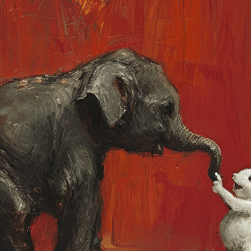 Ich selbst hoffe nur, dass dieser kleine Elefant mit der Maus irgendwo gefunden wird