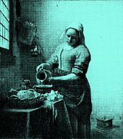 Vermeers Milchmädchen in neuem Gewand. Ausgeführt in zweifarbigen Punkten in einer modernen Farbe. Ein Blickfang für Ihre Wand. Werfen Sie einen Blick auf meine anderen Werke für weitere Versionen