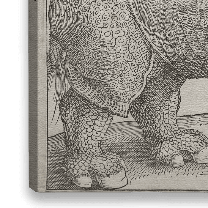 Bestelle diese Malerei Das Nashorn, Albrecht Dürer von De Canon als Reproduktion auf Leinwand, Alu-Dibond, als Poster, Fototapete oder Acrylglasbild.