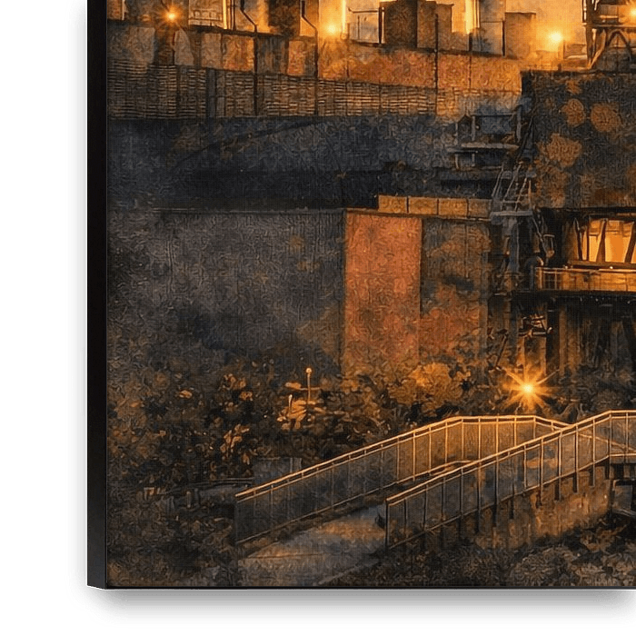 Urbane Motive, geprägt von Industrie, Beton und Geschichte, werden durch eine abstrahierte Bildgestaltung in einen Zustand der Ruhe überführt. Der Hintergrund löst sich auf, Formen und Farben treten zurück – Raum für Einkehr entsteht.