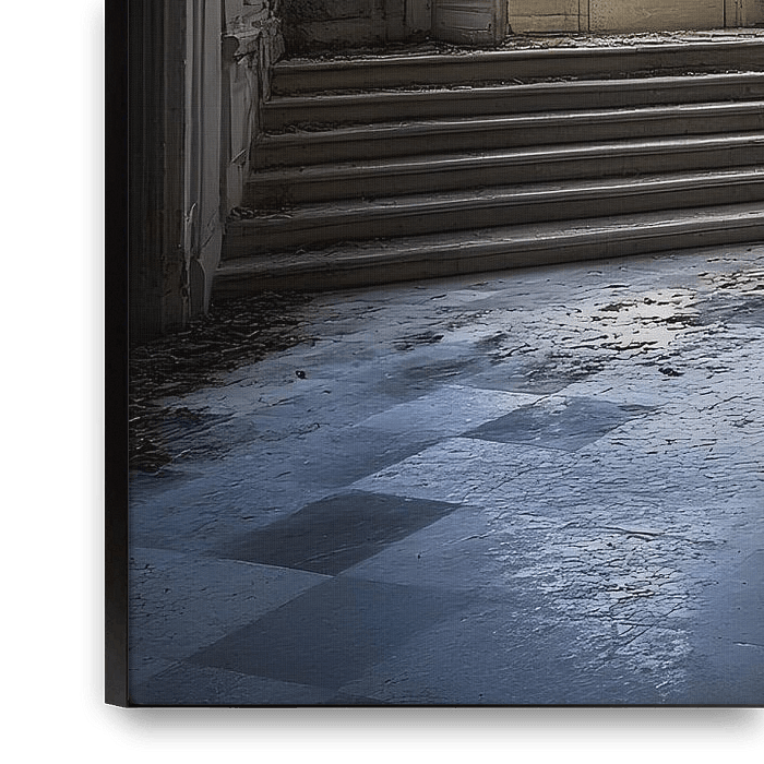 In diesem eindrucksvollen Bild wird die melancholische Schönheit eines Lost Place eingefangen – eine verlassene Villa, die einst von Leben und Eleganz geprägt war. An einer Eingangstür der Villa steht ein majestätisches Flügelpiano, das unter einer Treppe platziert ist. Das Klavier, obwohl von der Zeit gezeichnet, strahlt immer noch…