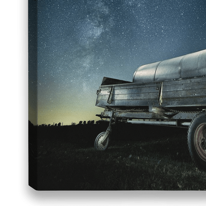 Ein altes Wasserfass, das auf einer Weide zurück gelassen wurde, zeichnet sich vor der herbstlichen Milchstraße in Mitteldeutschland ab