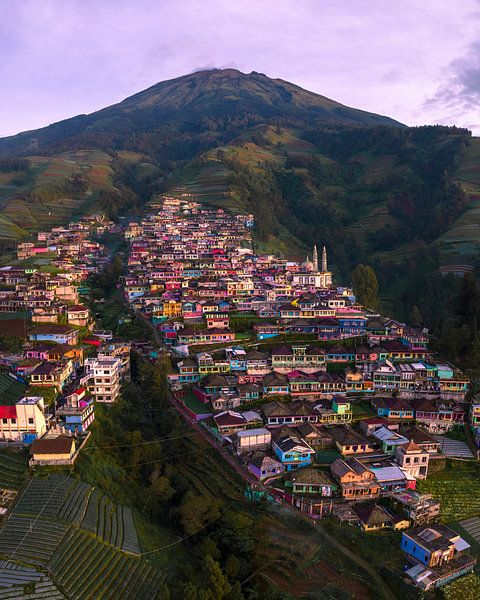 Bestelle dieses Landschafts-Wandbild Das farbenfrohe Bergdorf Nepal auf Java, Indonesien von Ewold Kooistra als Reproduktion auf Leinwand, Alu-Dibond, als Poster, Fototapete oder Acrylglasbild.