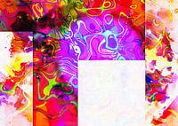 Ein digitales Stück, das eine Reihe von geometrischen Formen mit bunten Formen und Mustern enthält. Ein weißes Quadrat weist nur einen Hauch von Muster auf, was darauf hindeutet, dass es das fehlende Teil im Puzzle ist.