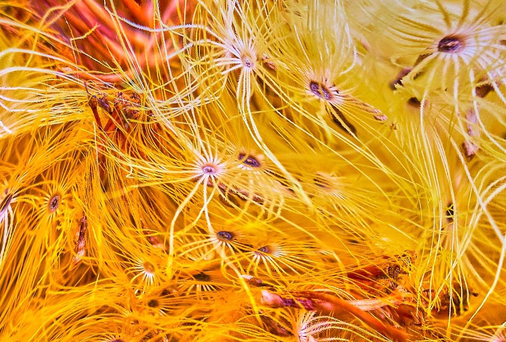 Beachten Sie, dass Teile des Fotos absichtlich unscharf gemacht wurden, um die Dreidimensionalität der Blume hervorzuheben. Das Schöne an diesen flauschigen Blüten ist, dass sie sich genau andersherum ablösen, als wir es vom Löwenzahn kennen.