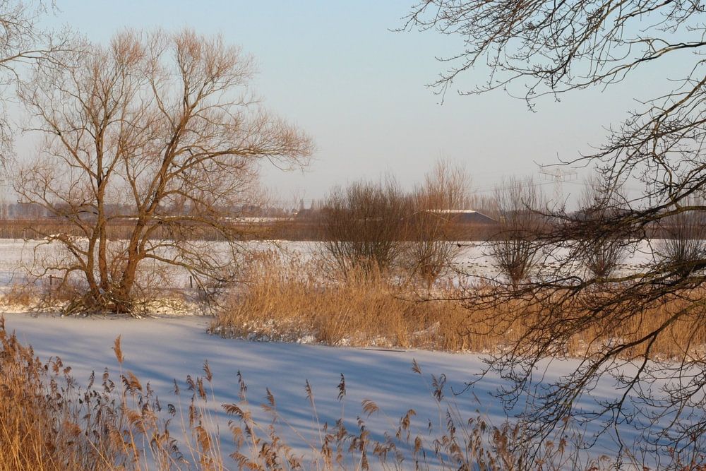 Am Rande von Elshout liegen die Elshoutse Wielen. An einem sonnigen Wintertag war das Schilf goldfarben. Ich habe versucht, ein Foto von der Kombination des goldenen Schilfs mit dem weißen Schnee auf dem Eis und dem klaren blauen Himmel zu machen. Es entstand eine besondere Landschaft, eingerahmt von hohen Bäumen.