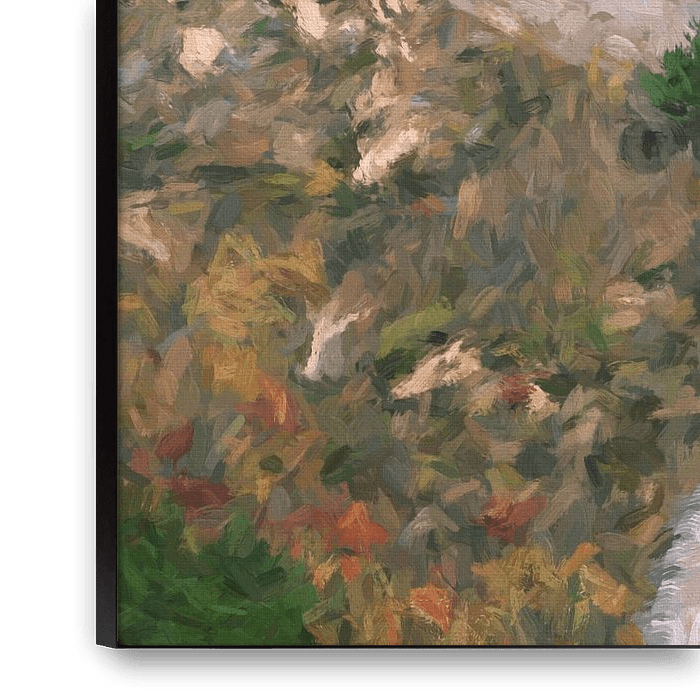 Ihre gewählte Kunst auf Leinwand, gespannt in einem Aluminiumrahmen. Schnell und einfach austauschbar für eine frische Ausstrahlung und ganz nach Ihren Wünschen.