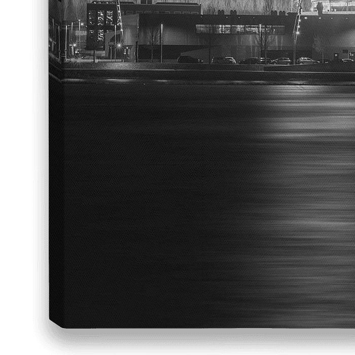 Das schöne Feijenoord-Stadion in Schwarzweiß während eines Abendspiels.