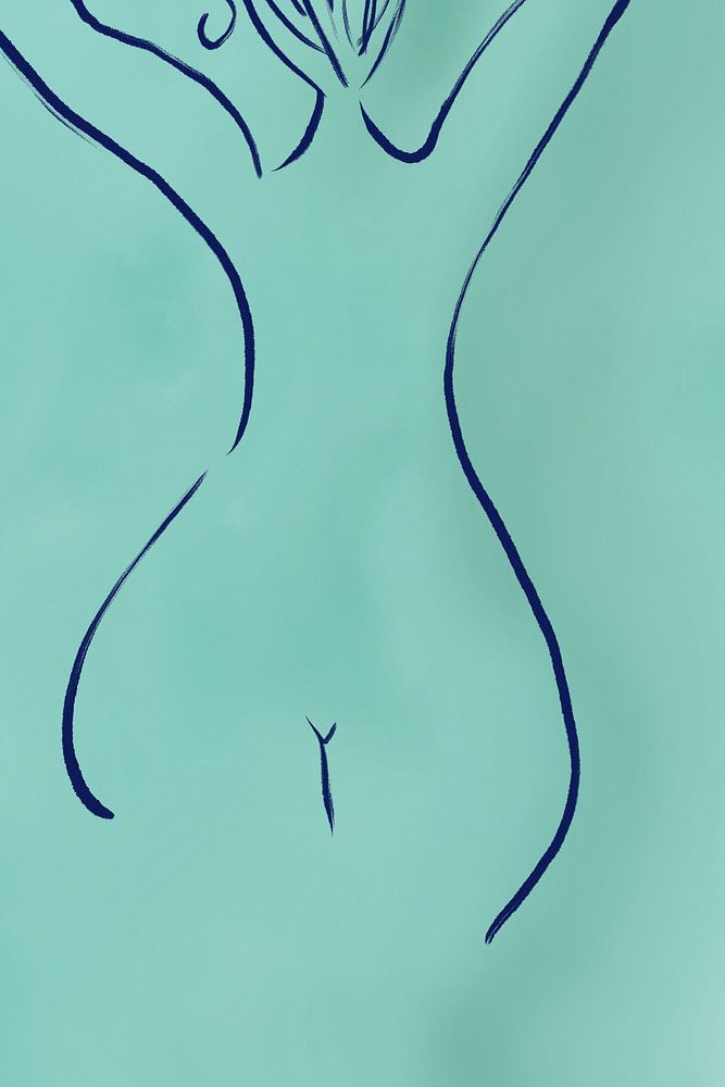 Naakte vrouw die doucht. Ze voelt de spanning van zich afstromen. Zorgeloos.
