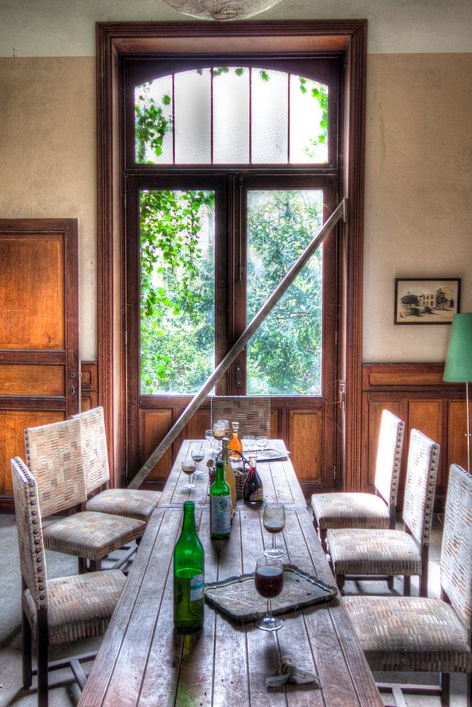 Deze tafel staat in een verlaten huis in belgie, het lijkt er op dat het feestje het laatste is geweest wat er heeft plaatsgevonden in dit huis.