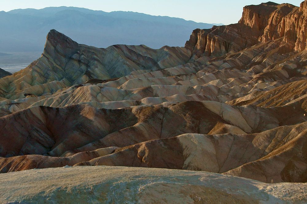 Der Death Valley National Park ist heiß, trocken und daher eine echte Wüste in Kalifornien, Amerika. Neben leeren Ebenen sind auch schöne farbige Berge zu sehen.