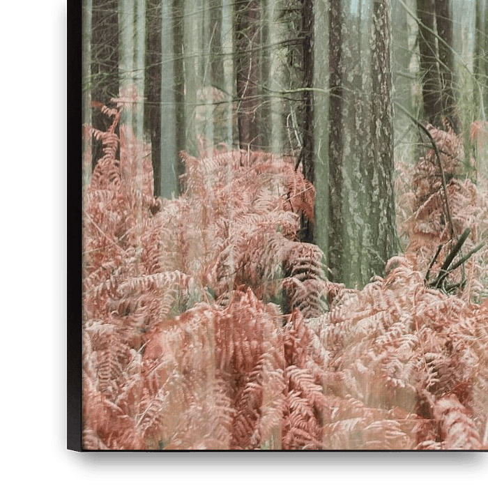 Het dennenbos op de Strabrechtse heide. De varens zijn weliswaar niet meer groen, maar het steekt mooi af tegen de ranke dennenbomen. Het wazige effect heb ik bereikt door meervoudige belichting.