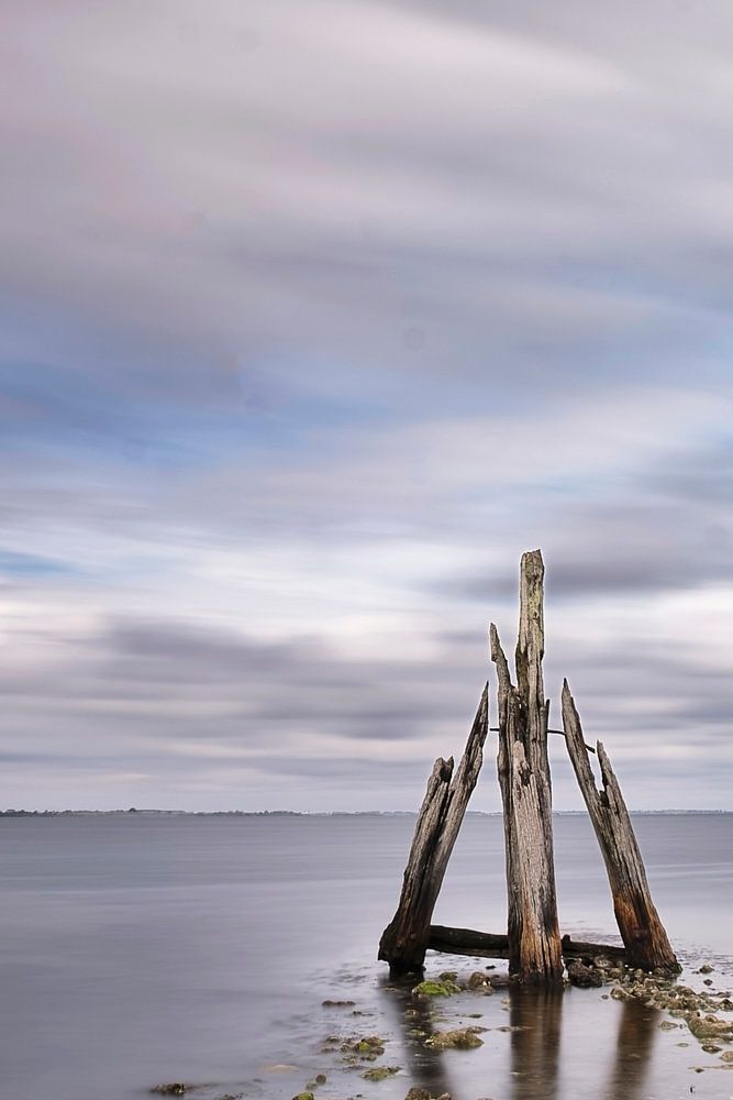 Ein bekannter Tauchplatz, bekannt als 'Arendshoofd' (Den Osse, Zeeland). Der hölzerne Adlerkopf ist fast verrottet, steht aber immer noch stolz umgeben von kleinen Steinen.