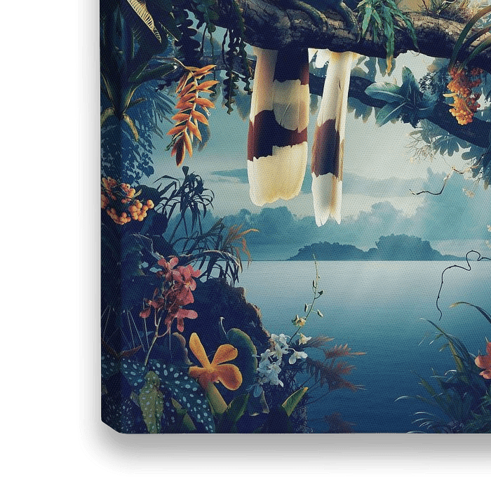 Unter einem Schleier aus Orchideen und gefiltertem Licht treffen sich zwei Nashornvögel in Stille - nicht als Vögel, sondern als Echo einer Verbindung. Einer ging, einer blieb, getragen vom Atem der Dämmerung.