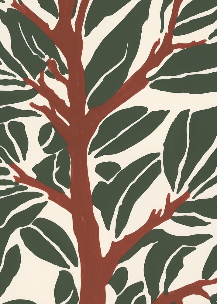 Ein abstrakter Kunstdruck von Zweigen mit Blättern