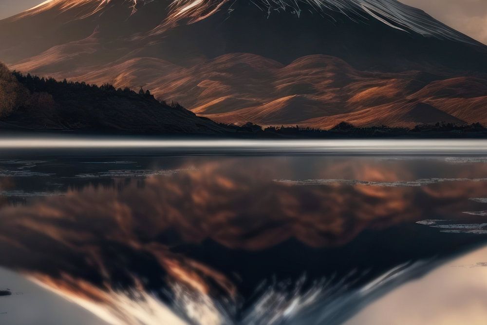 Der Berg Fuji in Japan. Dieses atemberaubende Foto zeigt den majestätischen Berg Fuji, einen ikonischen Berg in Japan, der oft als Symbol des Landes gilt.