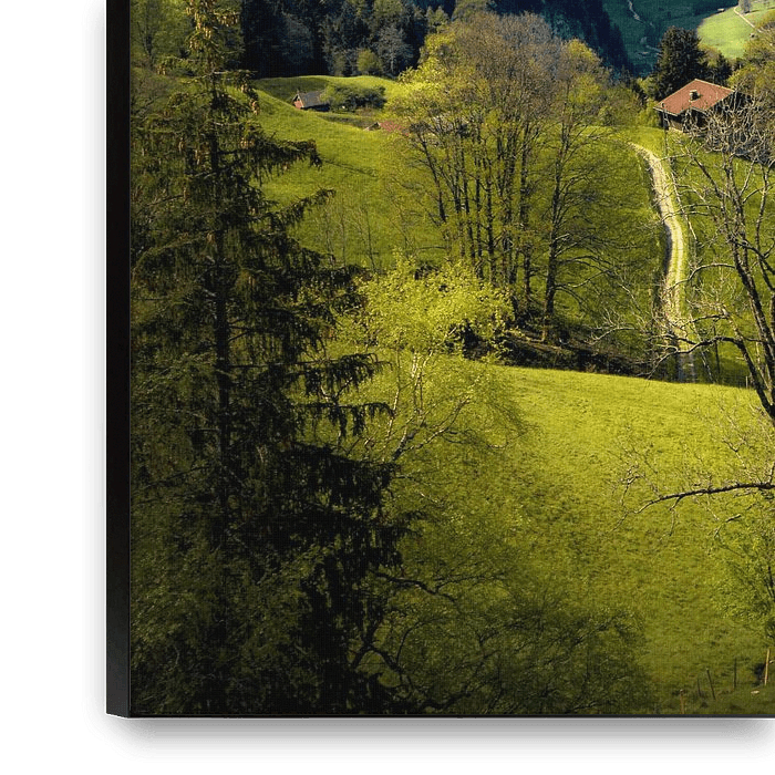 Ihre gewählte Kunst auf Leinwand, gespannt in einem Aluminiumrahmen. Schnell und einfach austauschbar für eine frische Ausstrahlung und ganz nach Ihren Wünschen.