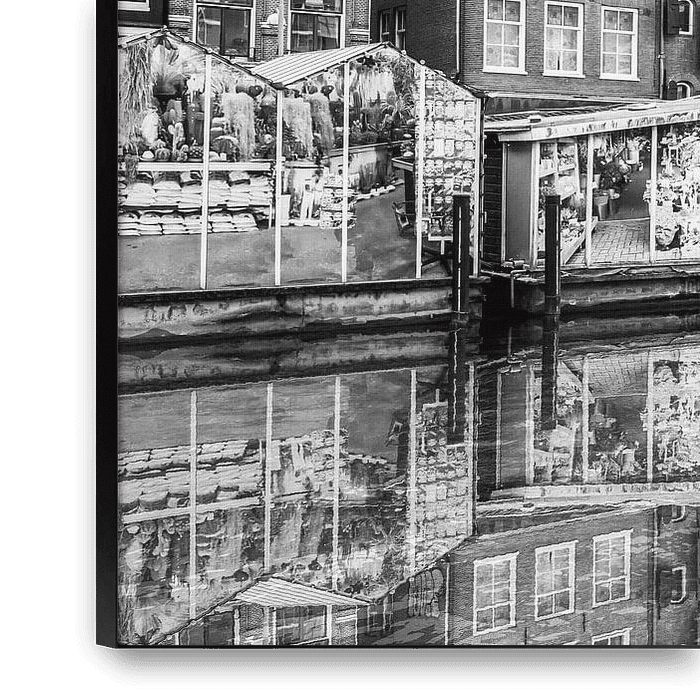 Der Blumenmarkt auf der Rückseite des Singel in Amsterdam schwarz-weiß