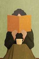 Völlig in Worte versunken verschwindet die Leserin hinter ihrem Buch. Mit einer Tasse in Reichweite und der Welt auf Pause verkörpert sie die ultimative Leseratte: zufrieden, unnahbar und ein wenig süchtig nach Geschichten.
