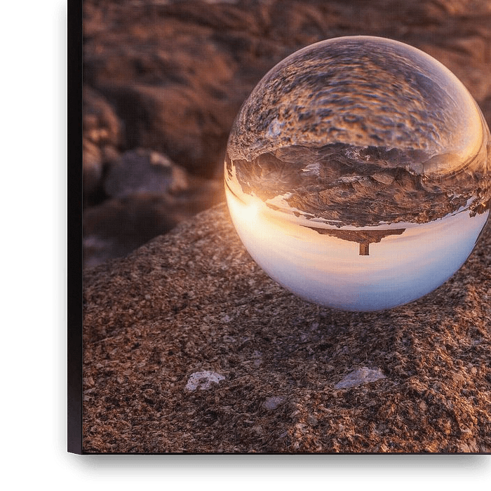 Künstlerisches Foto mit einer sphärischen Linsenkugel.