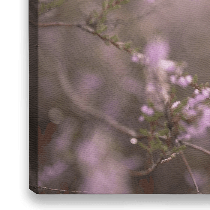 Nahaufnahme der blühenden Heidekrautpflanze mit geringer Schärfentiefe und einer Nachbearbeitung in weichen Pastellfarben.
