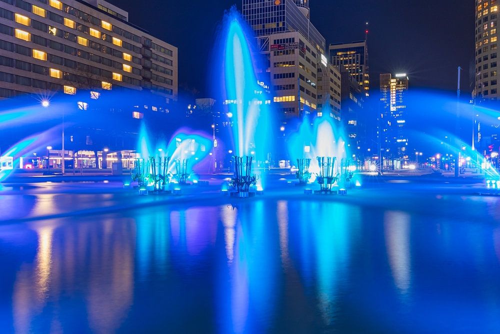 Der Hofplein-Brunnen in Rotterdam mit dem Hilton Hotel und Weena. Diese Bild ist Teil des fotografischen Kollektion von MS Fotografie. Klicken Sie rechts auf "Alle Bilder anschauen", um mehr Bilden aus der Kollektion zu sehen.