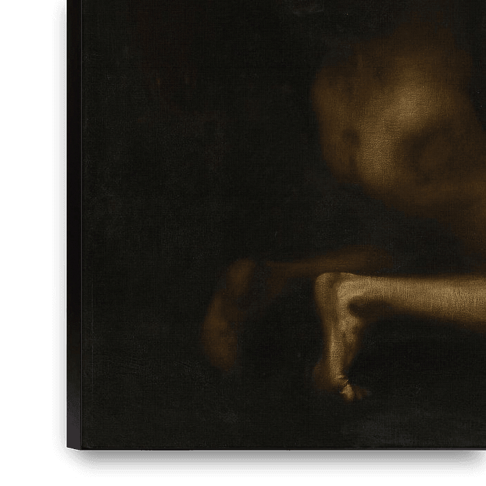 Die tödliche Umarmung der Femme Fatale, der sensously attraktiven, dämonischen Frau, ist ein Thema, das in seinen Werken häufig auftritt. Jedes Stilmittel - die auf engstem Raum gepresste Komposition, die unhöflichen Farben (die sich im Laufe der Zeit leider verdunkelt haben) und die sperrige Modellierung - verstärkt die brutale Erotik des Bildes.