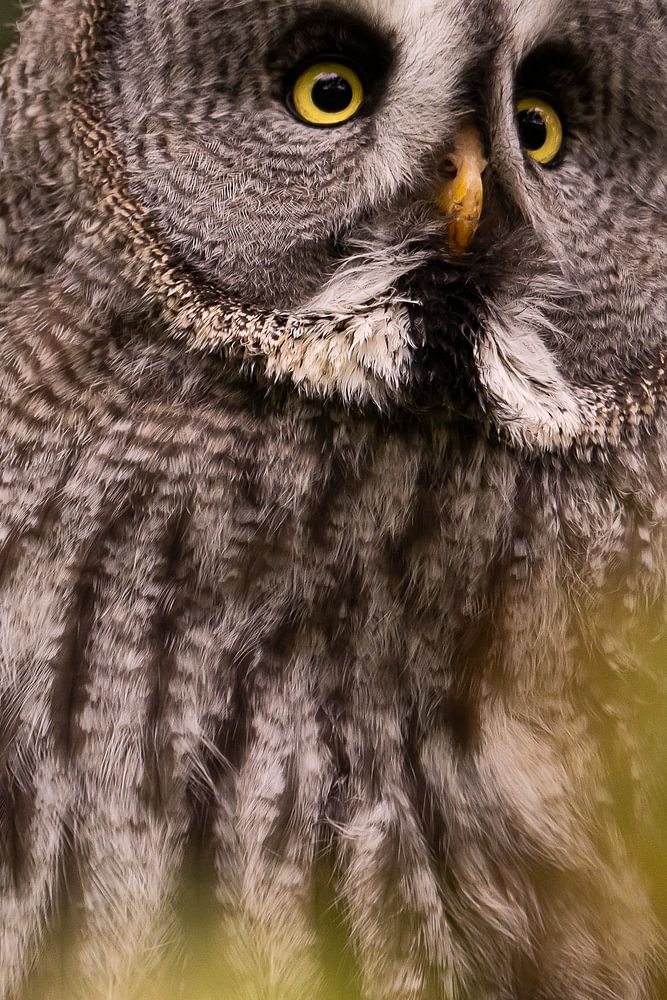 Lapplandeule zwischen den Blättern versteckt, konnte ich sie trotzdem gut vor die Linse bekommen.