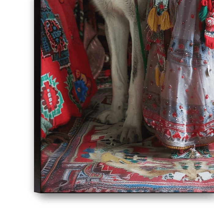 Riesenwolf mit einer Frau in böhmischem Kleid