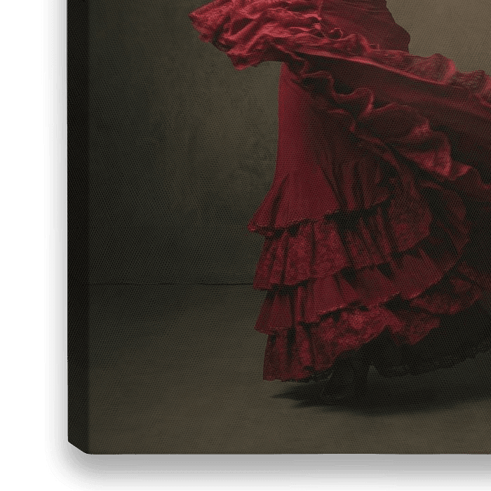 Dieses Bild zeigt keinen Tanzschritt, sondern einen Einschnitt. Der Körper der Tänzerin wirkt wie eine Klinge, die den Raum teilt – entschlossen, kontrolliert, ohne Zögern. Die Bewegung ist angehalten im Moment größter Spannung: Der Rock schlägt aus, nicht dekorativ, sondern wie eine Folge innerer Notwendigkeit.