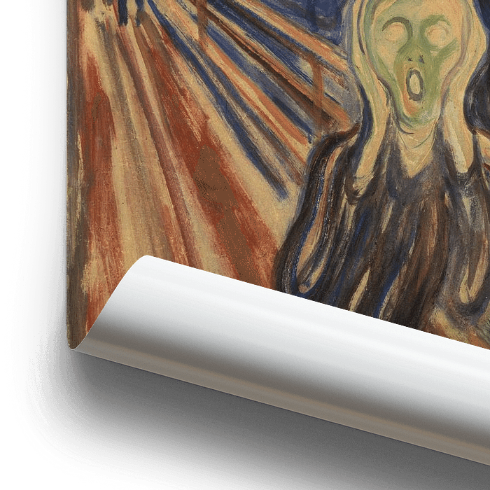 Der Schrei – Gemälde von Edvard Munch (1910). Originalgröße: 91×73,5 cm. Der Schrei ist eines der teuersten Bilder der Welt. Es wurde im Jahre 2012 für nahezu 120 Millionen Dollar in New York versteigert.