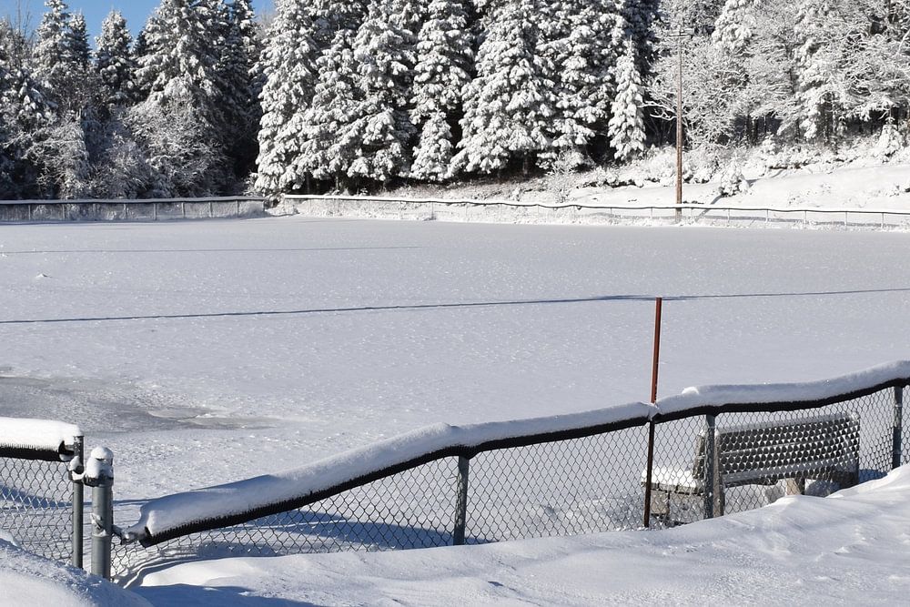 Der Sportplatz im Winter, Sainte-Apolline, Quebec, Kanada