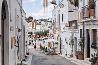 Lassen Sie sich von der sommerlichen Straßendekoration von Alberobello grüßen.