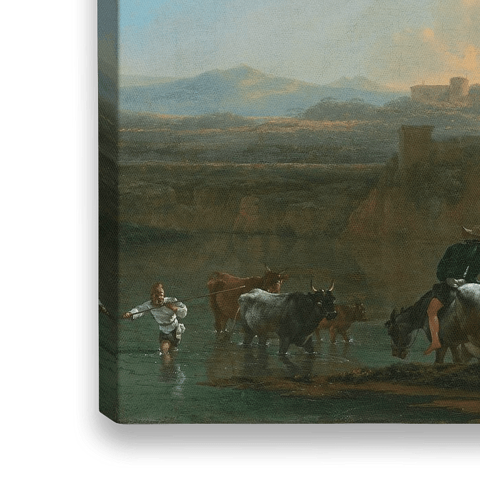 Bestelle Der Tiber mit der Ponte Molle bei Sonnenuntergang, Jan Asselijn als Reproduktion auf Leinwand, Alu-Dibond, als Poster, Fototapete oder Acrylglasbild.
