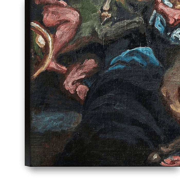 Dieses Gemälde stellt den Tod des römischen Konsuls Decius Mus während des Dritten Samnitischen Krieges in der Schlacht von Sentinum (295 v. Chr.) dar. Der Konsul hat gerade sein Leben den Göttern in der Schlacht geopfert (devotio), um den Römern den Sieg zu ermöglichen. Als er von der Lanze eines Soldaten durchbohrt wird, wirft er einen letzten, erschrockenen Blick zum Himmel, bevor er zu Boden geht und sich zu den übrigen Gefallenen gesellt. Das Gemälde ist eine Paraphrase von Rubens Der Tod des Decius Mus. Die deutlich geschwungenen Pinselstriche wurden zu einem charakteristischen Merkmal von Lundstrøms Gemälden in seiner sogenannten "lockigen" Periode. In dieser Periode wurde die streng kubistische Formensprache durch eine freiere und expressivere Dynamik und Bewegung ersetzt. Dieser neue expressive Stil zeigt sich besonders in der Darstellung von Menschen, die oft von Rubins sperrigen und verzerrten Formen inspiriert zu sein scheint.